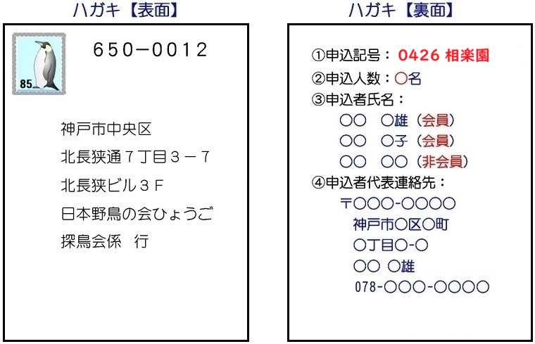 探鳥会の申し込み時に使用された往復ハガキや電子メールは、一定の期間保存された後、以下の基準で削除(往復はがきの場合、シュレッダーで断裁処理)されます。