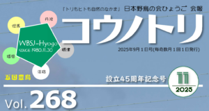 なお、このページ掲載の画像は、当会発行の会報誌「コウノトリ」268号、表紙と14ページから抜粋しております。